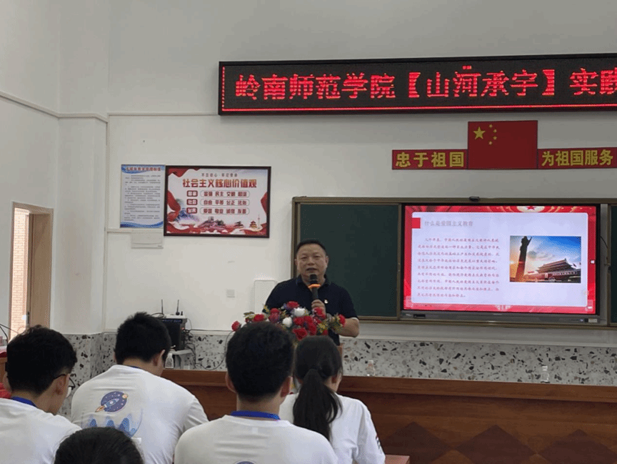 岭南师范学院“山河承宇”实践队于7月10日上午9时正式开展“岭南师范学院“山河承宇”实践队三下乡启动仪式暨吴川市黄坡镇冼村小学暑期编程班开班仪式。计算机与智能教育学院党委书记李海文为2023年“山河承宇”与暑期编程班学生作爱国主义教育专题报告。“山河承宇”全体实践队队员与少儿编程班学生共同出席了本次开班活动。