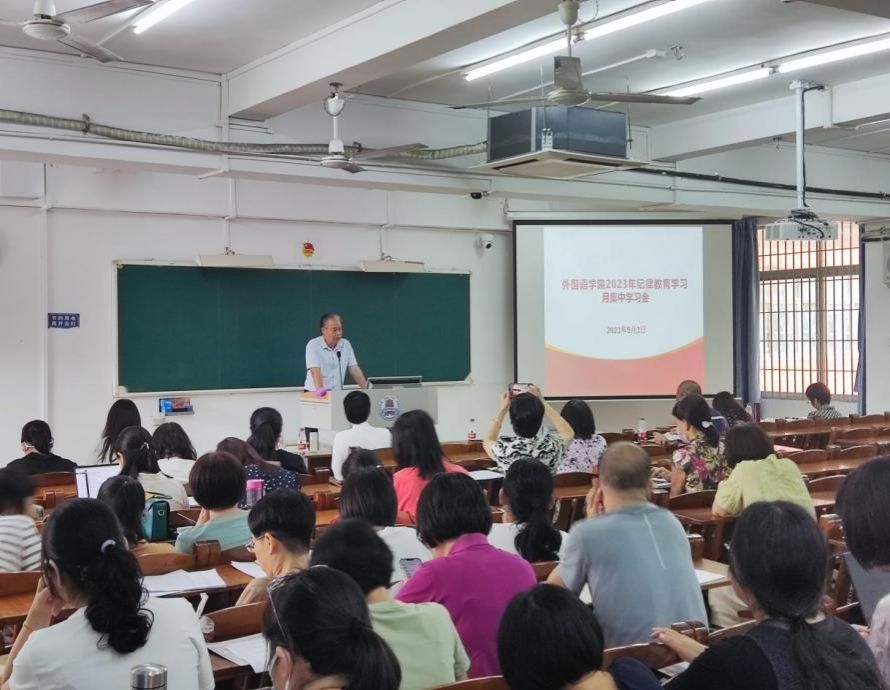 9月3日下午,外国语学院在教三405召开2023年纪律教育学习月活动部署推进会暨传达学校2023年秋季学期学校中层干部会议精神。学院全体党政领导班子成员和教职工参加推进会,会议由学院党委书记陈永国主持。