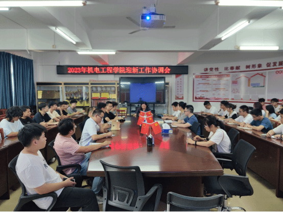 9月6日,为精准落实2023级新生顺利入学,更好地开展机电工程学院的迎新工作,机电工程学院在教二401室召开2023级新生迎新工作协调会。学院党委副书记黄展,辅导员蔡文、吴梓健、汤珍珍,2023级新生班主任、助理班主任以及主要学生干部等参加了会议。