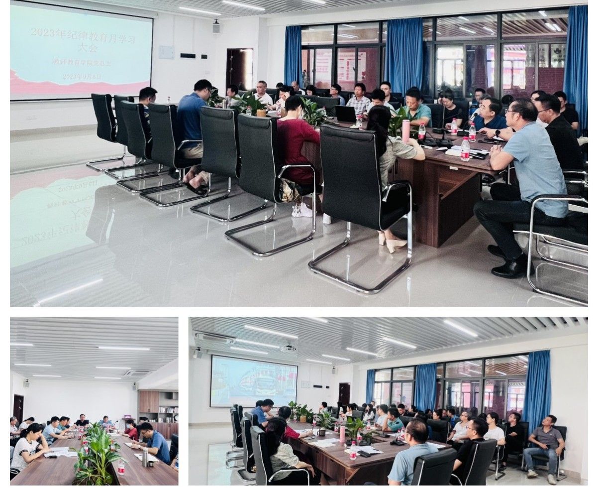 9月6日下午,教师教育学院召开“2023年纪律教育学习月”安排部署大会,会议由党总支书记练有扬主持,全体教职员工参加会议。
