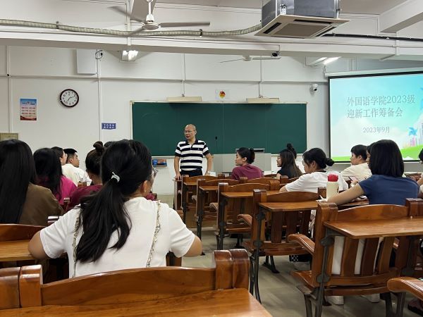 9月6日晚,外国语学院2023级迎新工作筹备会在教三405召开,会议由外国语学院党委副书记杨建伟主持。