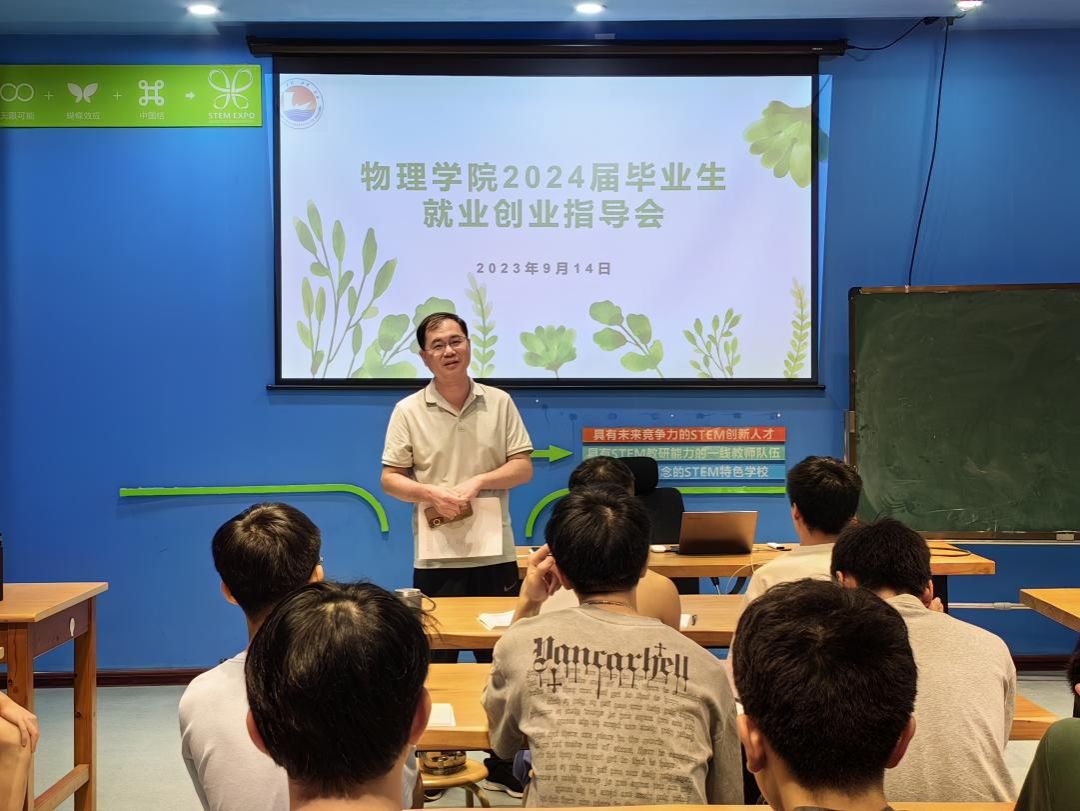 为切实做好2024届毕业生就业指导服务工作,帮助学生树立正确就业观念、了解就业形势及就业政策,提高毕业生就业竞争力,9月14日,物理学院于榕芳楼406开展2024届应用物理学专业毕业生就业动员大会。学院党委副书记梁伟民,班主任朱淼老师出席会议,辅导员李秋霞主持。