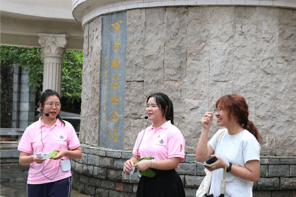 在百年师范纪念塔,“培根”宣讲团成员为新生讲解了岭南师范学院的前身雷州中学的校长兼伟大的革命活动家谭平山的事迹:日夜苦读考入北京大学,接受新文化、新思想的熏陶;体悟底层人民状况,积极探索救国救民道路;坚守革命信仰,领导广东青年运动,为革命事业抛头颅、洒热血;传播先进思想,培育革命后备军。并以此勉励新生,作为一名新时代的青年,应像谭平山先生那样,爱国爱党,无私为公,不懈奋斗。携着这份使命,担着这份责任,不惧风雨,勇担重任。