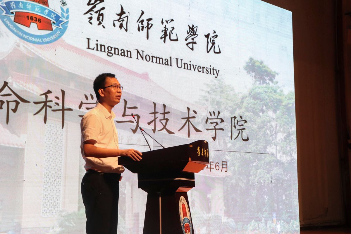 刘锴栋在“思政第一课”上详细介绍了学院的师资力量、人才培养目标、科研水平等情况。刘锴栋对新生提出三点希望:一要做胸怀远大理想的模范者,自觉将青春小我融入强国大我,以理想信念作伴,在青春远航中破浪前行;二要做矢志不渝的奋斗先锋,在实现中华民族伟大复兴的赛道上展现我们岭南师范学院生科院学子的风采;三要做心怀大爱的奉献榜样,青春的品格是奉献,青春由磨砺而出彩,人生因奋斗而精彩。希望同学们积极弘扬和传承岭南师范学院大爱精神,勇做走在时代前列的奋进者、开拓者、奉献者,心中有爱,眼里有光,乐于奉献,让青春在为祖国、为人民、为民族的奉献中绽放绚丽光彩。