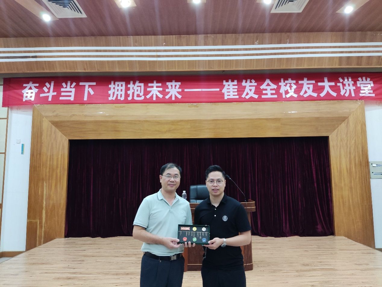 梁伟民代表学院对崔发全校友百忙抽空回到母校为师弟师妹们传经送宝表示衷心的感谢。希望同学们以优秀校友为标杆,及早规划,明确目标,加强学习,夯实知识,拓展素质,提升能力,不断砥砺前行,实现自己的精彩人生。最后,梁伟民代表学校赠送学校纪念品,感谢校友对母校的支持。
