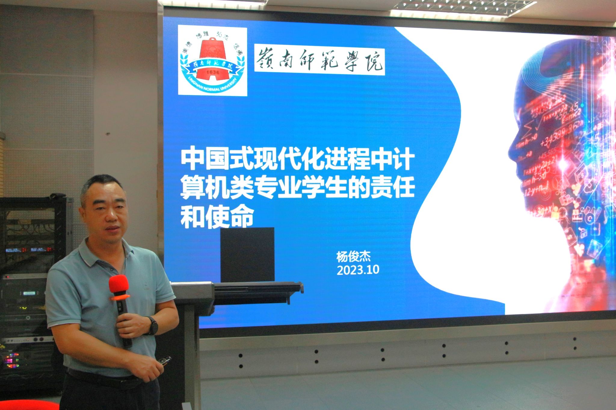 10月9日晚上和10月10日上午,计算机与智能教育学院党委书记李海文和院长杨俊杰教授在雷阳楼B栋802教室为学院学生讲授2023年秋季学期“思政第一课”。