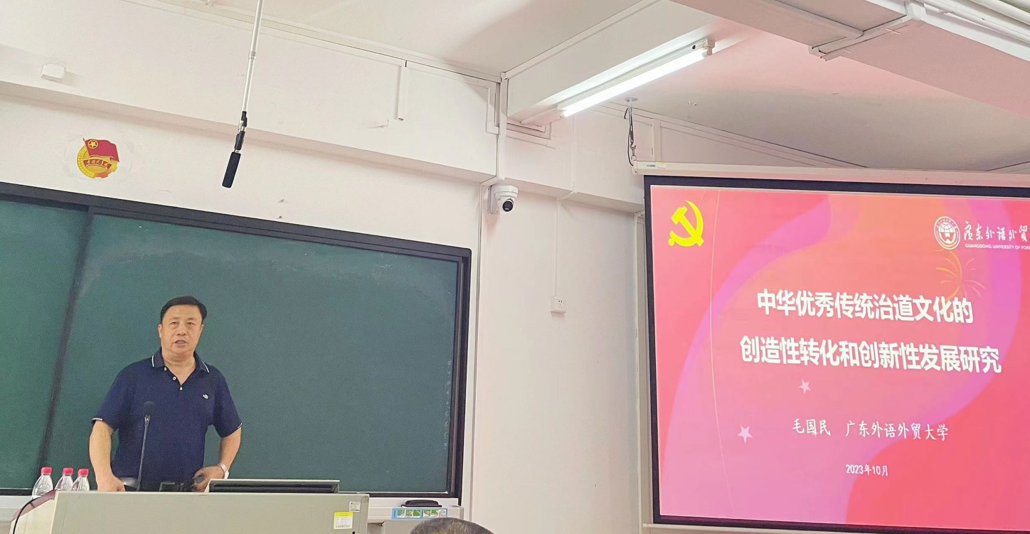 于卫青对毛国民的到来表示热烈欢迎。他表示,毛国民多年来主要从事哲学、乡村治理等领域的研究,在《哲学研究》《光明日报》等权威期刊上发表40多篇学术论文,近年来,主持国家哲学社会科学规划一般项目1项,主持教育部哲学社会科学规划一般项目项,及省部级社会科学规划项目3项;在人民出版社、社会科学文献出版社等出版学术专著5部,兼任广东省社会管理研究会副会长、中国人类学民族学研究会理事。他表示,希望同学们能够认真学习领会毛国民对中华优秀传统治道文化的创造性转化和创新性发展这一研究的详细讲解,从中获得收益与启发。