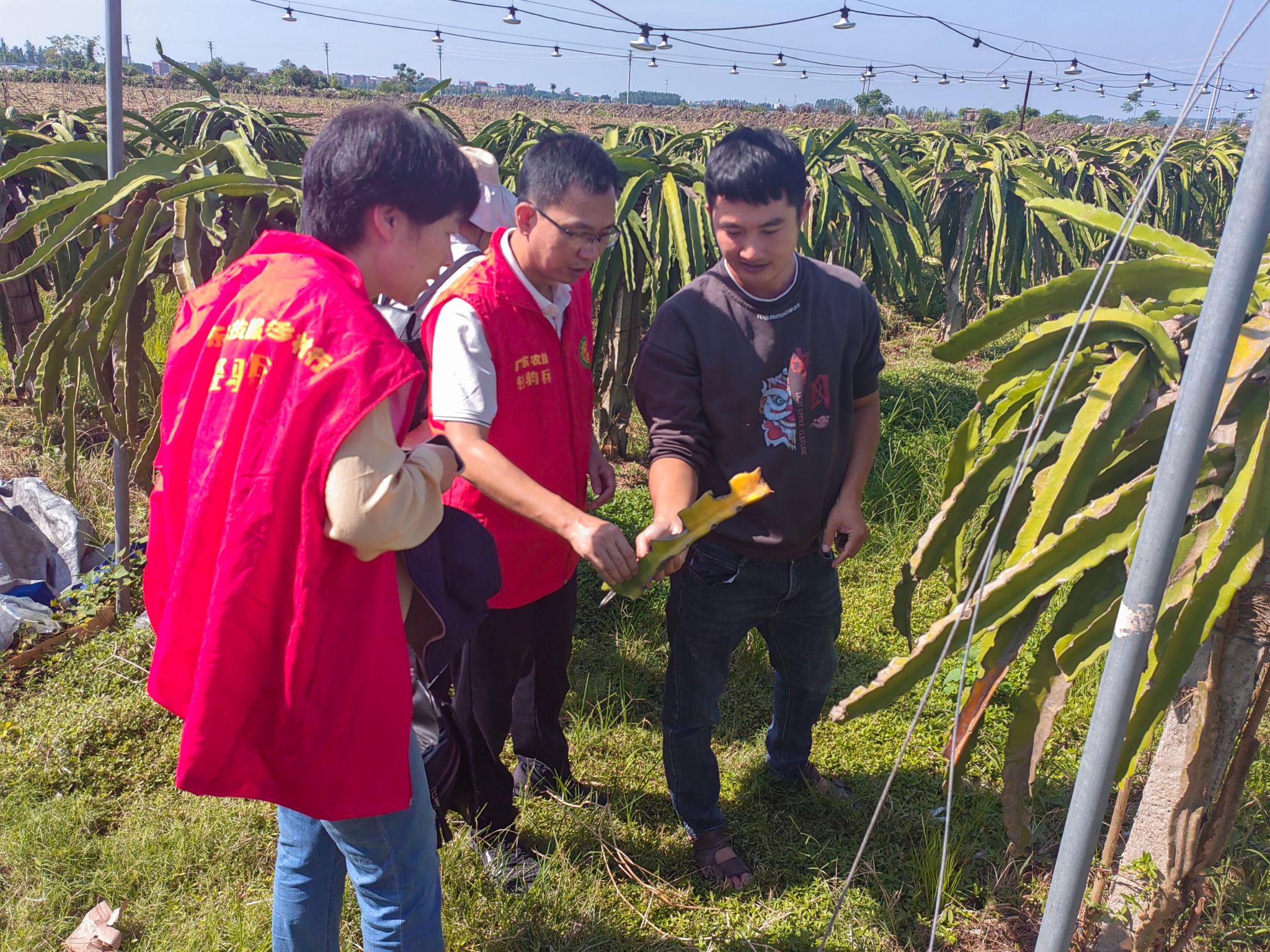 随后,科技特派员团队的相关专家深入一线进行调研,先后对吴川市祥龙生态种植专业合作社、吴川有年种植专业合作社种植基地进行实地考察,并针对性的对火龙果、番薯在种植过程中遇到的测土配方施肥技术、病虫害防治等问题进行了专业性指导。