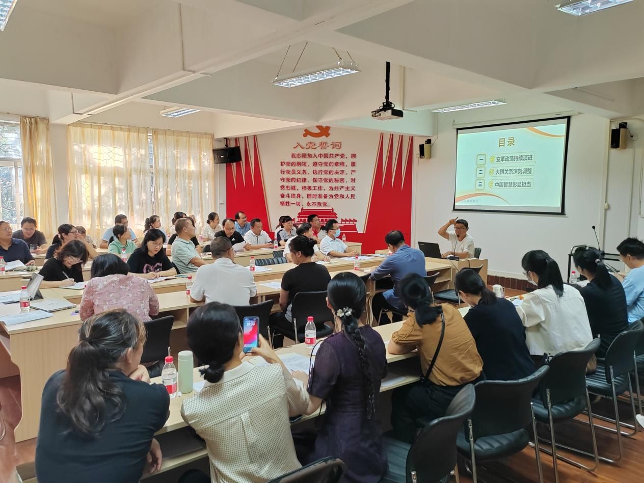 陈跃瀚博士围绕《赓续历史文脉 谱写当代华章》专题进行说课。该专题学习贯彻习近平总书记关于文化自信的重要论述,结合首次提出的习近平文化思想,讲清楚中华文明的五个突出特性紧密联系、有机统一,讲清楚当前我国文化事业繁荣发展的现状,以及新时代新的文化使命。他强调教学中,要注意融入岭南师范学院红色基因文化传承,讲好谭平山、黄学增等校友的红色故事。