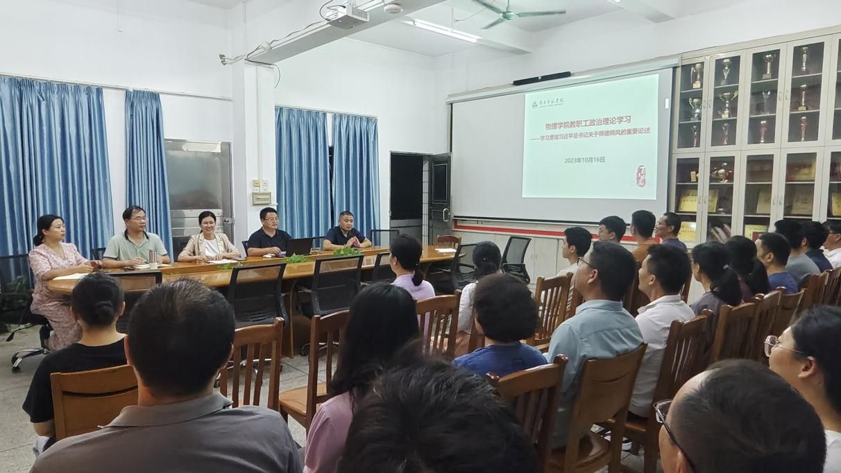 近日,物理学院在榕芳楼403会议室召开教职工政治理论学习会,学习贯彻习近平总书记关于师德师风的重要论述。学院党委书记陈碧琼主持会议,学院全体教职工参加。