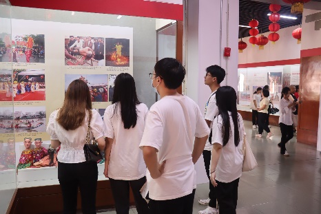 党员们参观抗日战争展厅,了解湛江的历史起源与发展以及湛江人民共同抵御外来入侵者的历史故事。展厅里的文字和文物记录着一代又一代的进步青年学生掀起一场又一场轰轰烈烈的学生运动。除此之外,党支部成员在非物质文化遗产展厅也了解到醒狮、石狗雕、木偶戏、傩舞等湛江特色文化,博物馆通过图片、实物、泥塑、墙绘等方式,对湛江非遗保护成果进行展览,浓缩了湛江独特的风土人情,展示地方底蕴和文化。