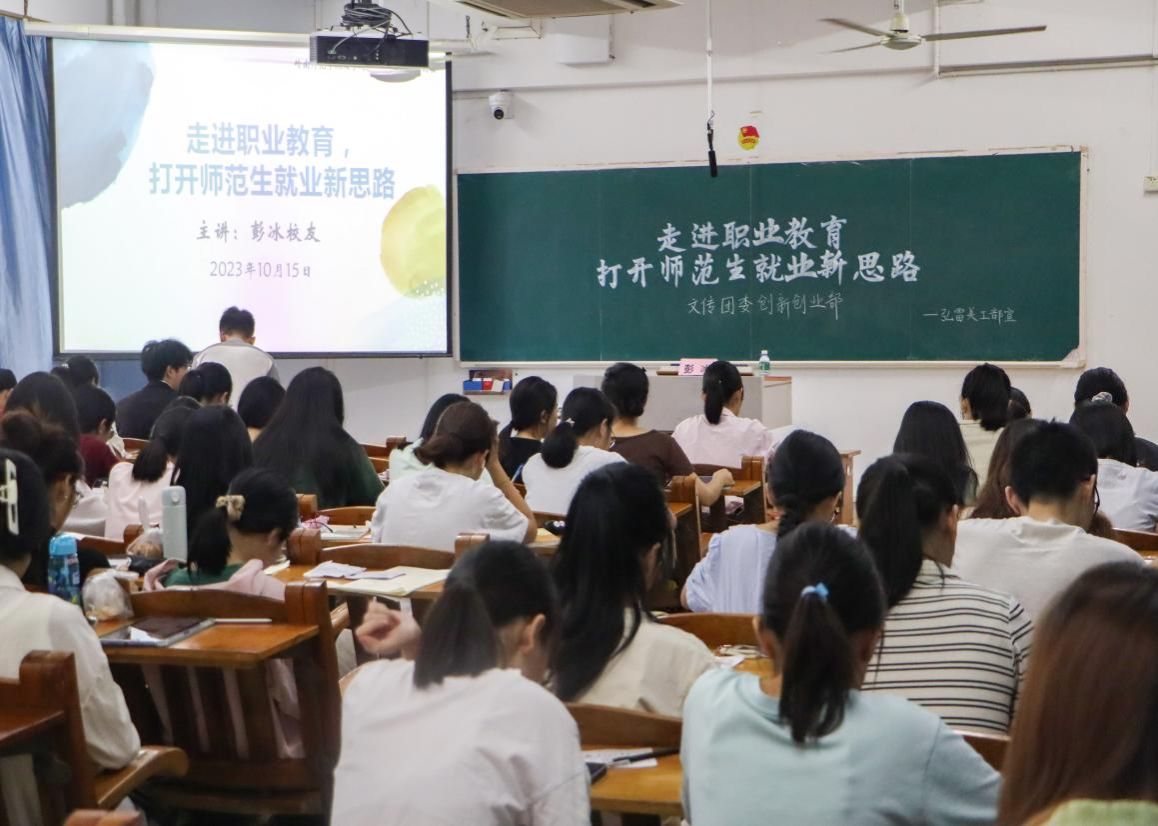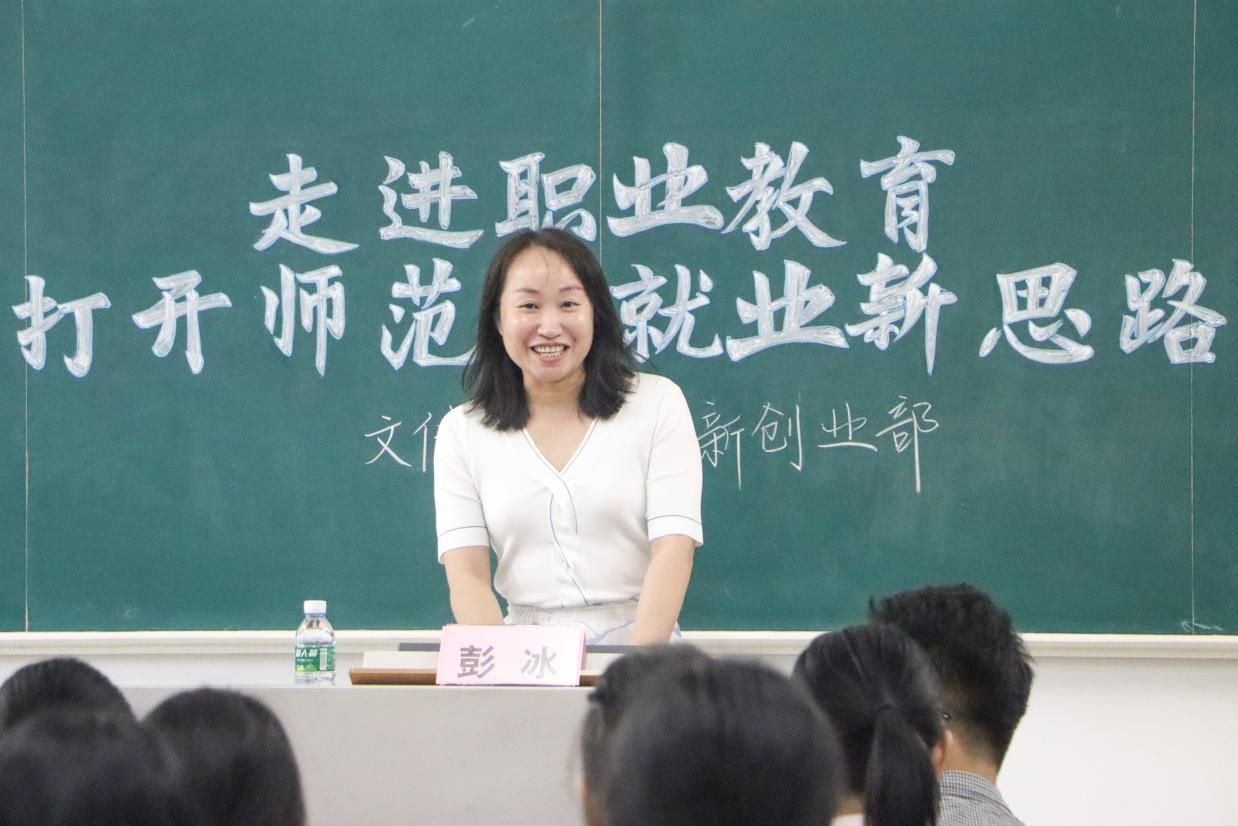 10月15日,文学与传媒学院于第三教学楼206室举办了《走进职业教育,打开师范生就业新思路》讲座。本次讲座由毕业于我院汉语言文学专业、现任湛江机电学校党委委员的彭冰校友主讲,学党委副书记梁碧斐出席了本次讲座。