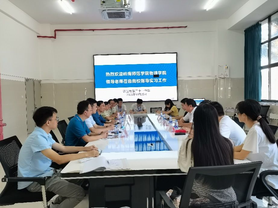 为了解2020级学生物理学教育实习情况,确保教育实习工作有序进行,10月25日,物理学院党委陈碧琼书记带队,与物理系主任阳喜元、老师肖世发以及老师吴旭明等一行赴湛江市恒盛实验学校、湛江市第二十一中学、湛江市博雅学校开展教育实习走访检查,了解并指导实习生的实习情况。