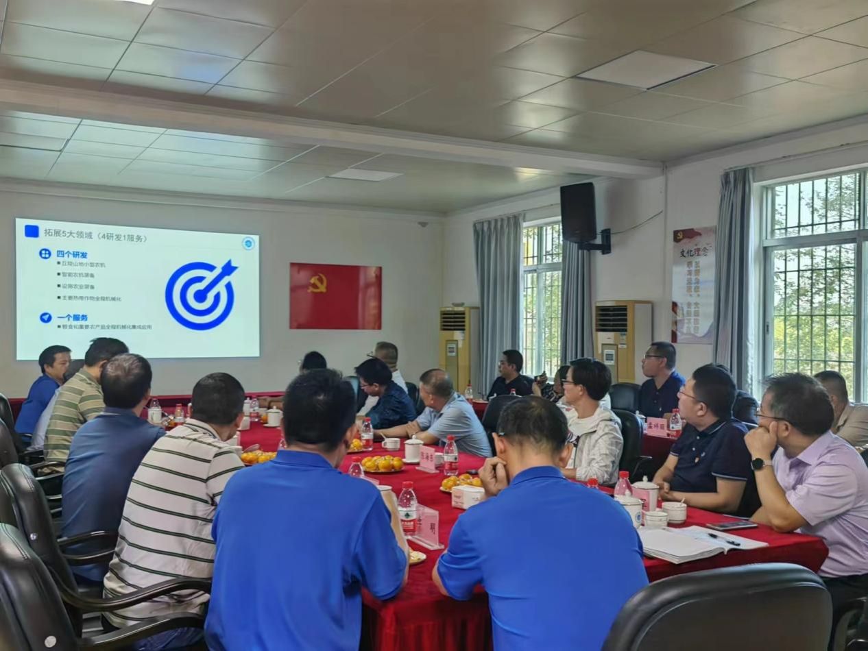 实地参观之后,院所双方在会议室进行了交流,会议由研究所的邓远宝主持,邓远宝首先代表农机所对大家的到来表示热烈欢迎,介绍了农机所的历史沿革、人才队伍、科研体系、各个装备研究室等。随后,院长陈波介绍了岭南师范学院电子与电气工程学院的基本情况,主要包括人才队伍、科研成果、招生就业以及学院办学特色等方面。双方表达了强烈的合作意愿,合作方向计划在智能化、集成化的农业化建设上,下一步将引导团队进一步沟通,在项目开展、项目联合申请和奖项申报等方面制订具体合作计划。
