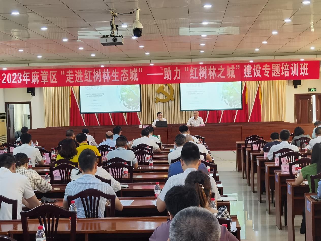 为深入贯彻落实习近平总书记视察广东重要讲话重要指示精神及国家碳达峰碳中和重大决策部署,努力践行习近平生态文明思想,有效开展红树林相关知识的科普、宣传,推动湛江市“红树林之城”建设,助力守护好“国宝”红树林,促进麻章区学习贯彻习近平新时代中国特色社会主义思想主题教育走深走实,日前,湛江市麻章区“走进红树林生态城——助力红树林之城建设”专题培训班举办,借助“线上+线下”课堂模式,区、镇、村三级近2000名干部职工同上一堂课。培训班邀请岭南师范学院红树林研究院教授刘锴栋作专题讲座。