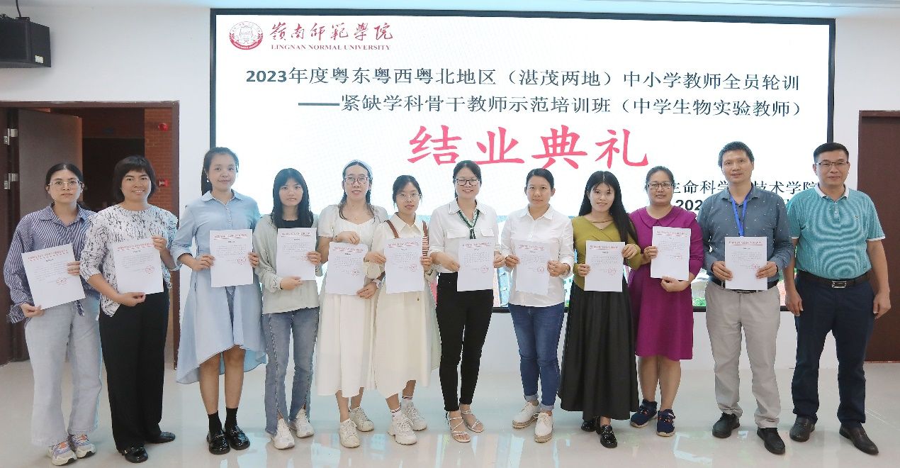 11月9日下午,2023年度粤东粤西粤北地区(湛茂两地)中小学教师全员轮训——紧缺学科骨干教师示范培训班(中学生物实验教师)在第五教学楼A栋612举行结业典礼。生科院党委书记李发武、院长刘锴栋出席结业典礼,典礼由生物科学专业老师余小杏主持。
