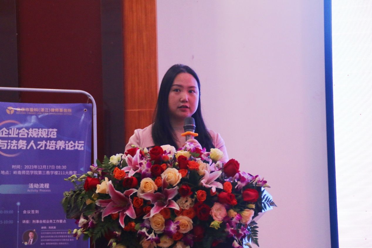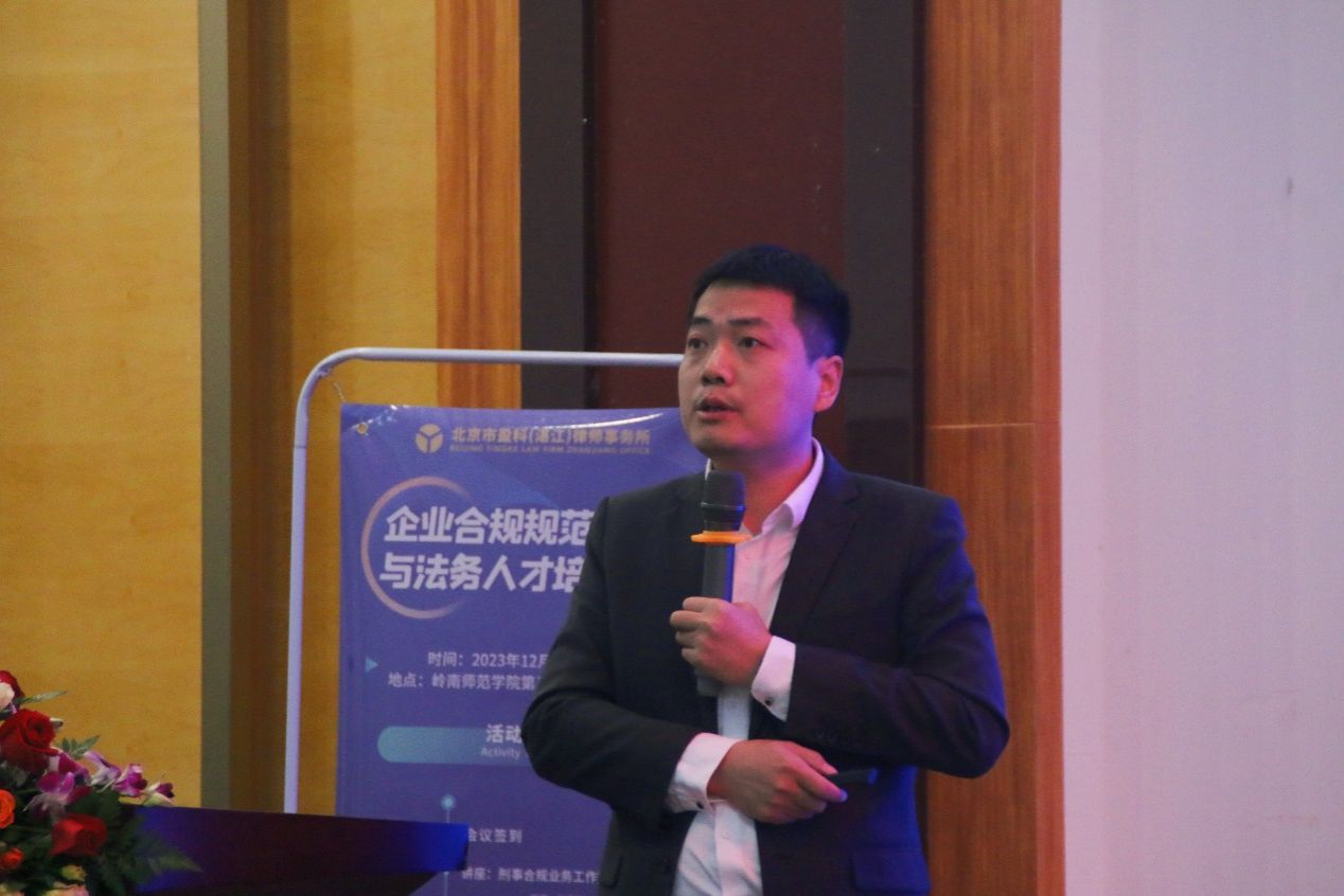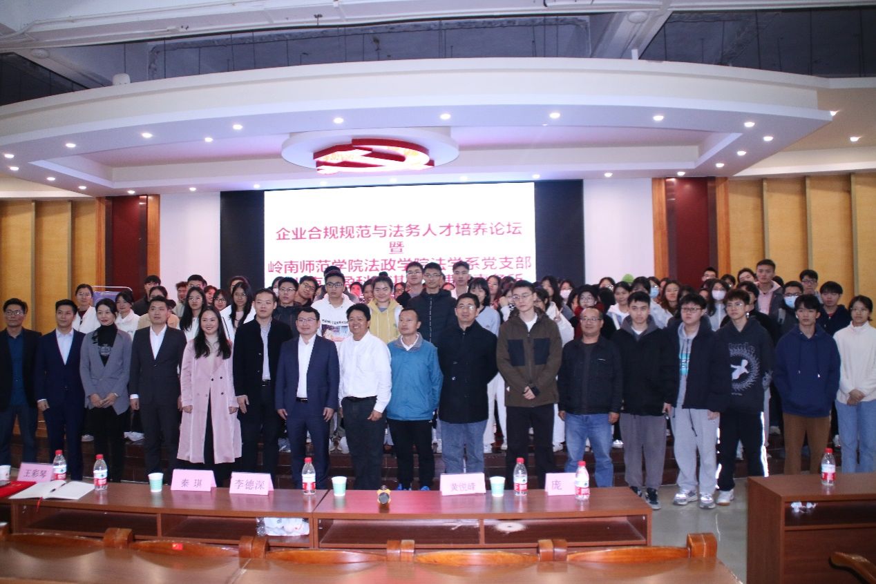 为进一步开展法政学院党建业务“双融双促”工作,提高法政学院法学专业人才培养质量,加强校企合作,12月17日,法政学院党委法学教工党支部与北京市盈科(湛江)律师事务所党支部于弘雷楼211室联合举办了主题为“企业合规规范与法务人才培养”的校企合作论坛。法政学院党委书记李德深、北京市盈科(湛江)律师事务所党支部书记黄悦峰律师、秦琪执行主任、法政学院法学系教工党支部书记庞锋以及法学专业师生参加了本次活动。论坛由北京盈科(湛江)律师事务所的高级合伙人董丽娜主持。