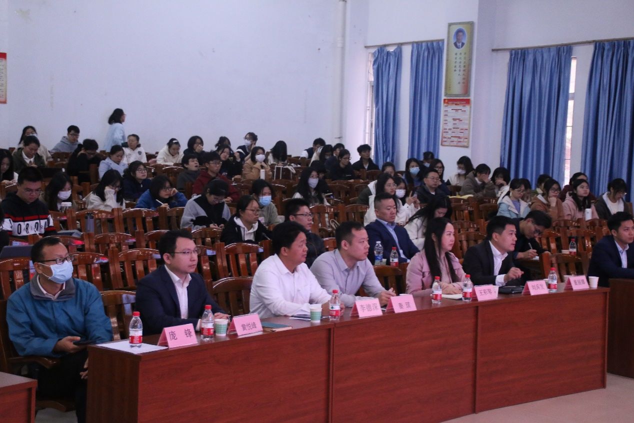 论坛首先由李德深致欢迎辞,李德深对北京市盈科(深圳)律师事务所高级合伙人及其团队成员的到来表示热烈欢迎,并表示与各位相聚于此,开展党建共建,校企合作,既是校企双方加强党建,推进习近平法治思想“进课堂、进课程、进头脑”的一项重要举措,也是促进法务人才培养,加强理论与实践结合的一个重要平台。接着,李德深详细介绍了法政学院法学专业的人才培养与就业概况。他表示希望未来能够将主题论坛的开展作为一种常态,与北京市盈科(湛江)律师事务所在党建工作、人才培养、实践就业等方面加强合作交流,搭建起高校与企业间的良好合作平台并建立广泛深入的长期合作,进一步推动校企人才培养的互动交流与深度契合,为学院法学专业学生争取更多实践和就业机会,帮助法学专业学生实现法学理论学习向实务操作的转化,切实提高学院法学人才培养质量。