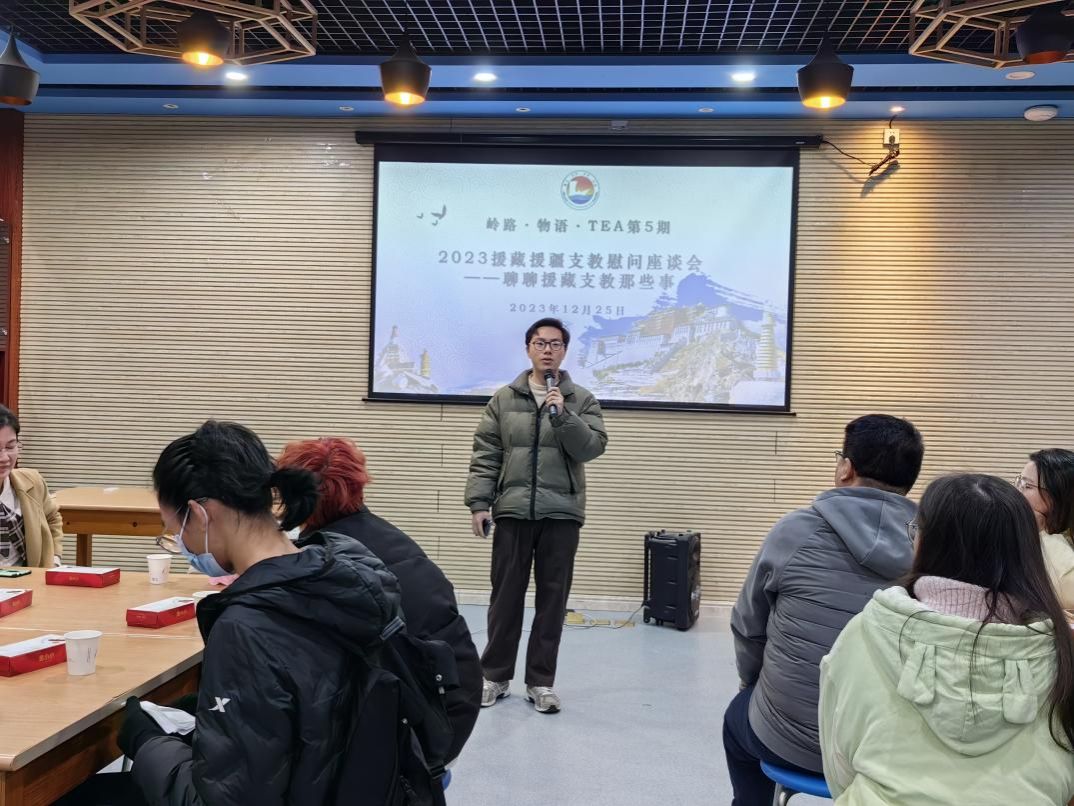 12月25日,物理学院举行岭路·物语·TEA暨2023年援藏援疆支教慰问座谈会,学院党委书记陈碧琼,院长全军,副院长田春华,系主任阳喜元、周小燕老师出席座谈会,2020级辅导员与各年级学生代表参加会议,学院党委副书记梁伟民主持会议。