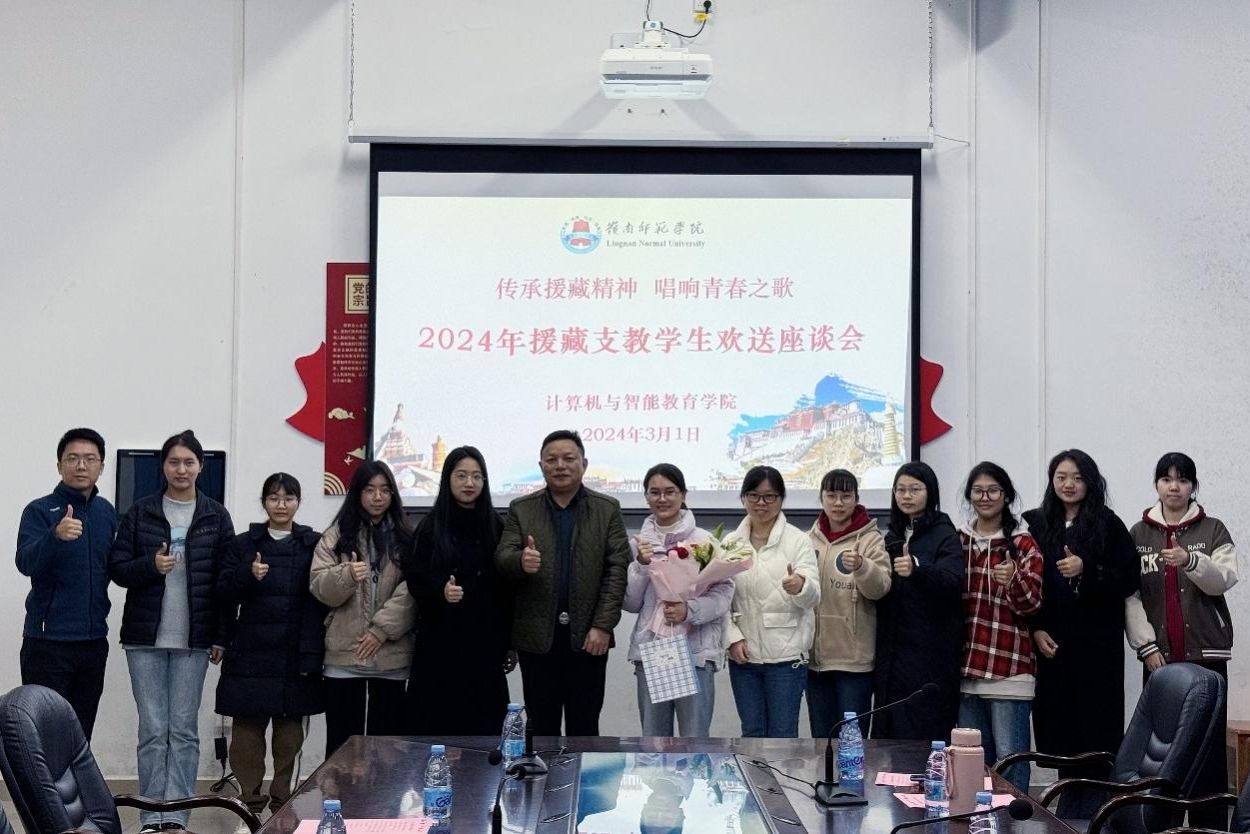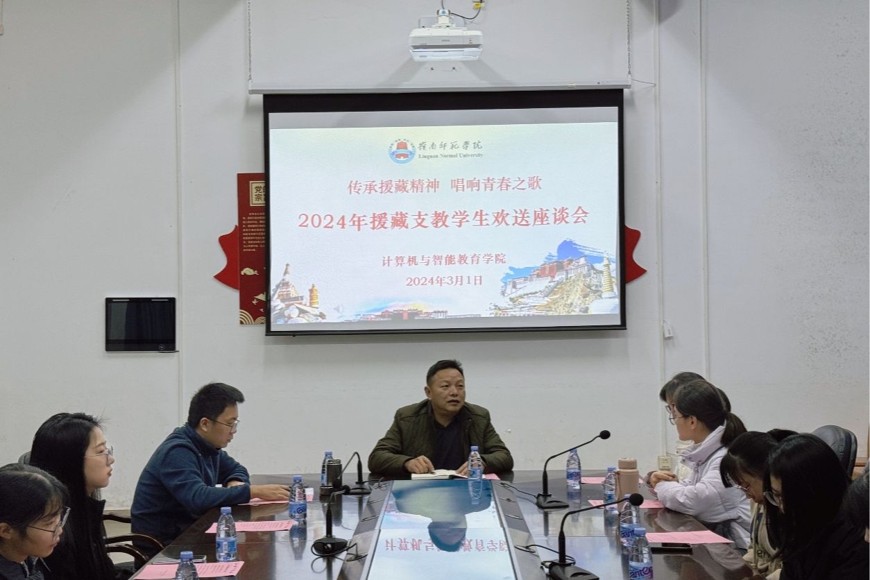 3月1日,计算机与智能教育学院在综B101会议室召开主题为“传承援藏精神 唱响青春之歌”2024年度春季学期援藏支教学生欢送座谈会。学院党委书记李海文、教育技术系主任兼班主任沈丹丹、辅导员刘利丹和张茜出席了会议,2024年援藏支教学生莫雪、往届援藏支教学生钟芷亦、学院西藏籍学生代表及2021教技2班级学生代表参加了会议。