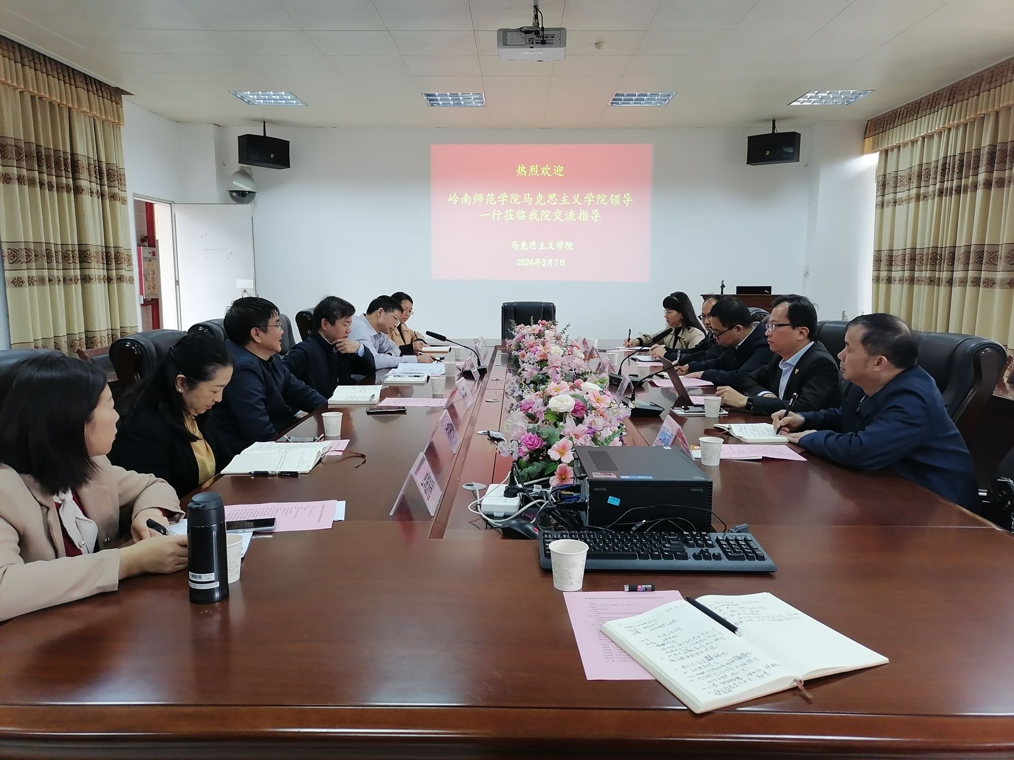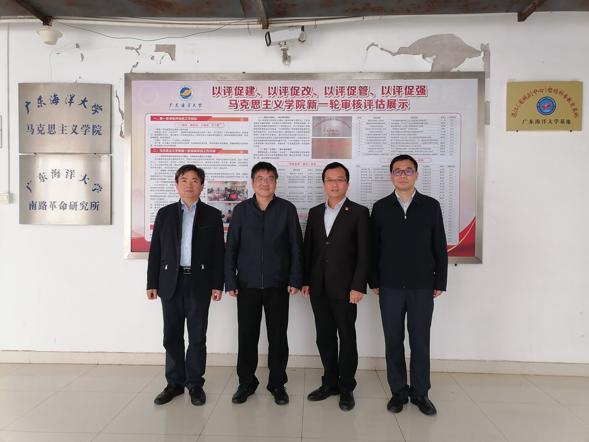 3月7日上午,学院党委书记邓倩文、院长夏松涛、副院长施保国、贺永田及教研室主任一行赴广东海洋大学马克思主义学院考察调研本科教学审核评估工作。双方就课程建设及教学改革、评估指标体系的解读、评估资料的准备、评估期间所应注意的事项等进行了深入探讨,为我院的评估提出一些建设性意见。