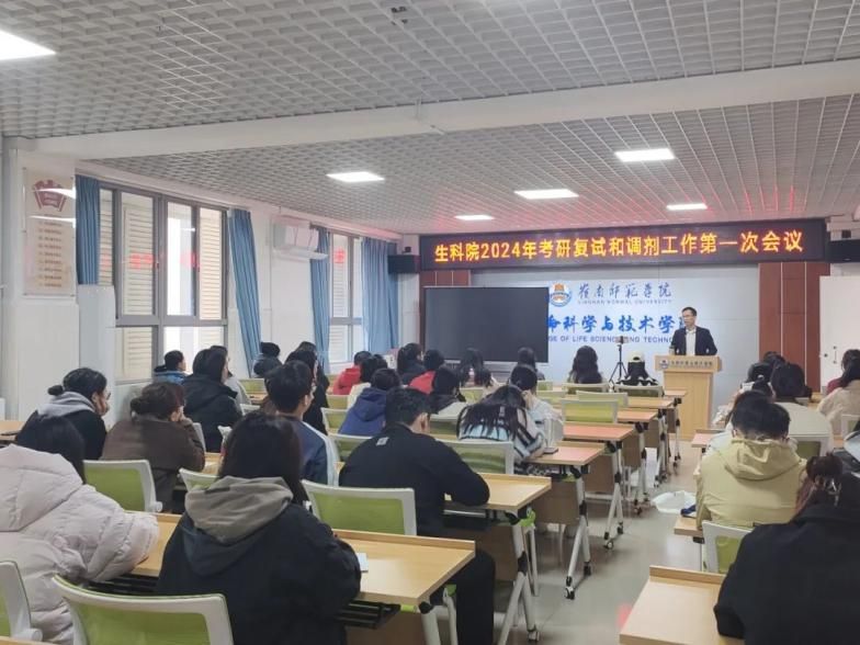 2月28日,生科院于第四教学楼E栋507教室采用线上线下相结合的方式召开了2024年考研复试和调剂工作指导会,助力考生在复试、调剂中取得优异成绩。生科院院长刘锴栋、党委副书记覃静君以及20级考研学子参加会议。