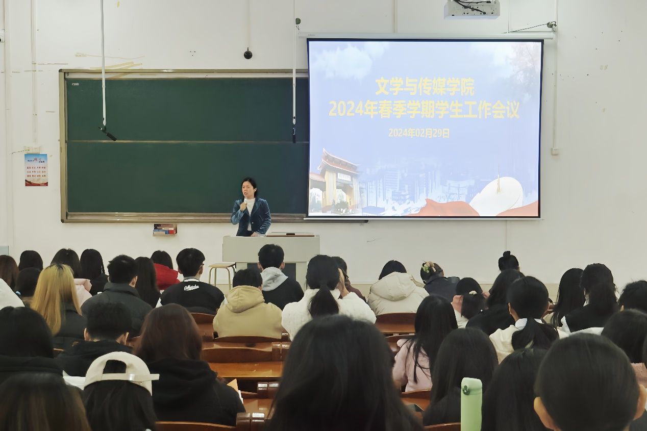 为进一步推动“新学工”建设工作,文学与传媒学院2024年春季学期学生工作会议于2月29日在第三教学楼611教室召开,出席本次会议的有副书记梁碧斐、学工办全体老师、十大机构主要负责人、21-23级级委以及各班主要班委。