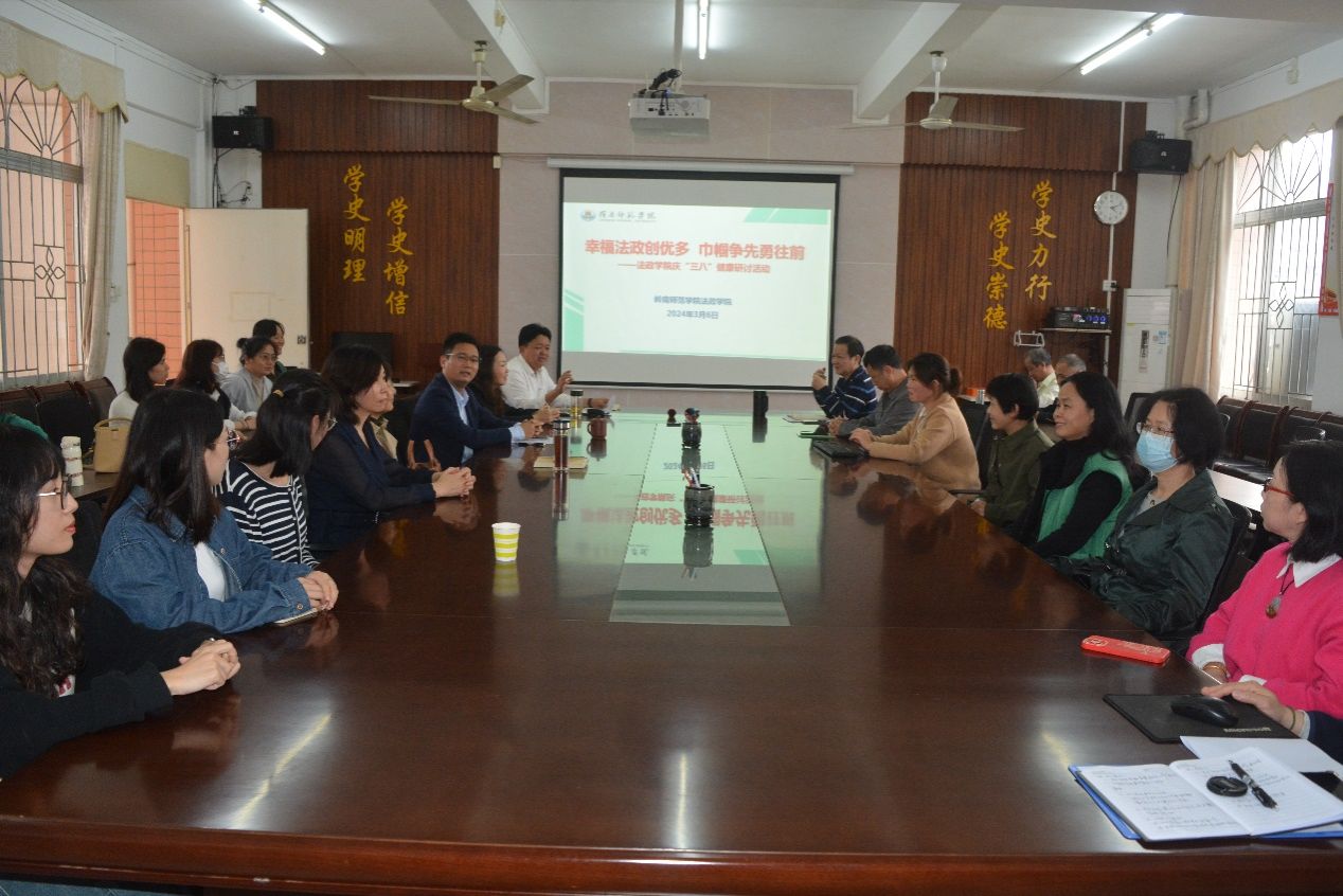3月6日,法政学院开展了“幸福法政创优多,巾帼争先勇往前”女教职工努力工作、健康生活座谈会。法政学院党委书记李德深、院长刘鑫淼、分工会主席易贤和全体女教职工等参加了会议。