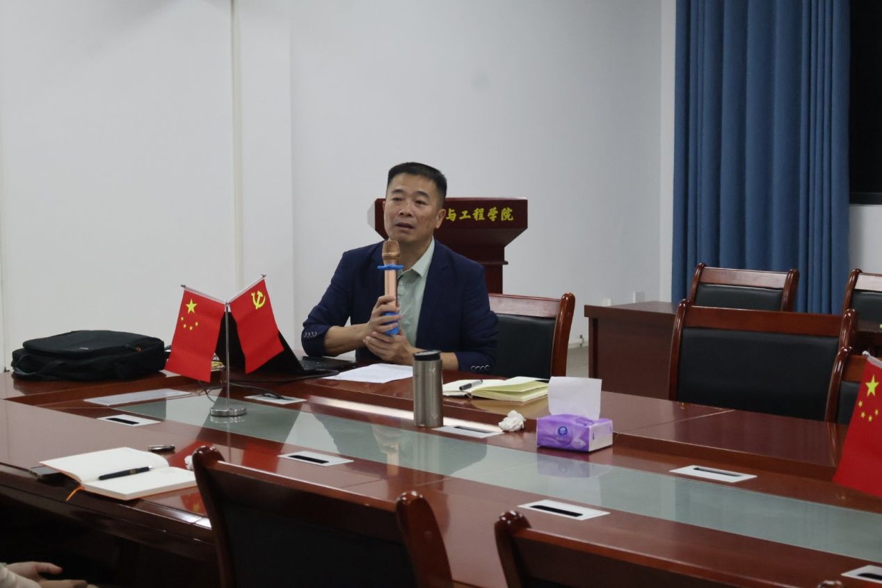 3月23日,食品科学与工程学院党委书记邱飞在第五教学楼B栋318室开展春季“思政第一课”,党委副书记刘淑芬、辅导员袁嘉渝、苏琳,学院六大学生工作机构同学一起听课。