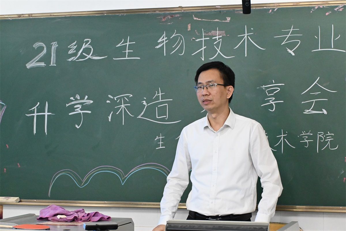 刘锴栋参加了2021生技班的动员会。他表示,当前高质量发展和新质生产力的培育急需高水平人才,升学深造是提升综合能力的重要机会。他希望同学们能够在纷繁复杂的社会环境,竞争激烈的形势中攻坚克难。他以此为出发点,为同学们说明了升学深造的重要性,接着他就如何选择合适院校及专业为同学们提供可行性建议。