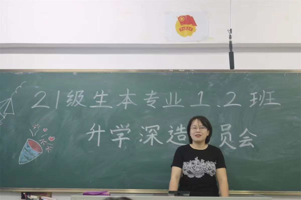 生物科学(师范)1、2班动员会中,覃静君提出,同学们要根据自己的就业预期、学习能力与兴趣趋向来选择适合自己的院校与专业,尽早为自己定下目标,早做决定,早做打算,逼自己努力一把,抓好提升的关键时机,做好复习准备。