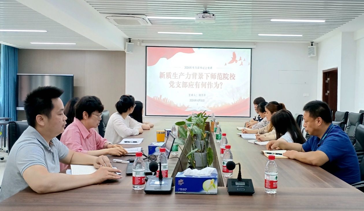 4月8日,教师教育学院综合党支部举办了一场党课,支部书记刘天平围绕“新质生产力背景下师范院校党支部应有何作为”这一主题,为该支部全体党员上了一堂生动的党课。