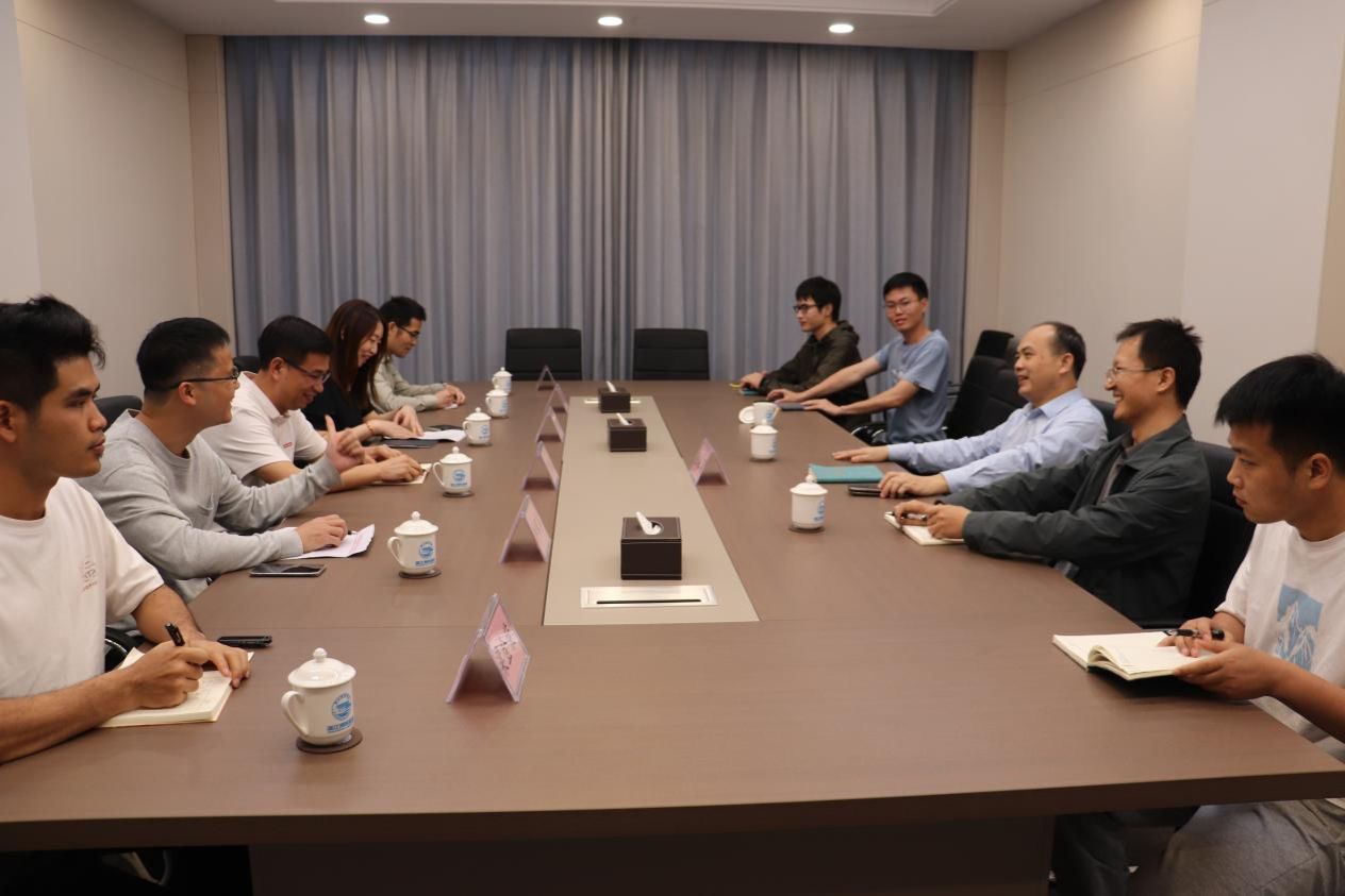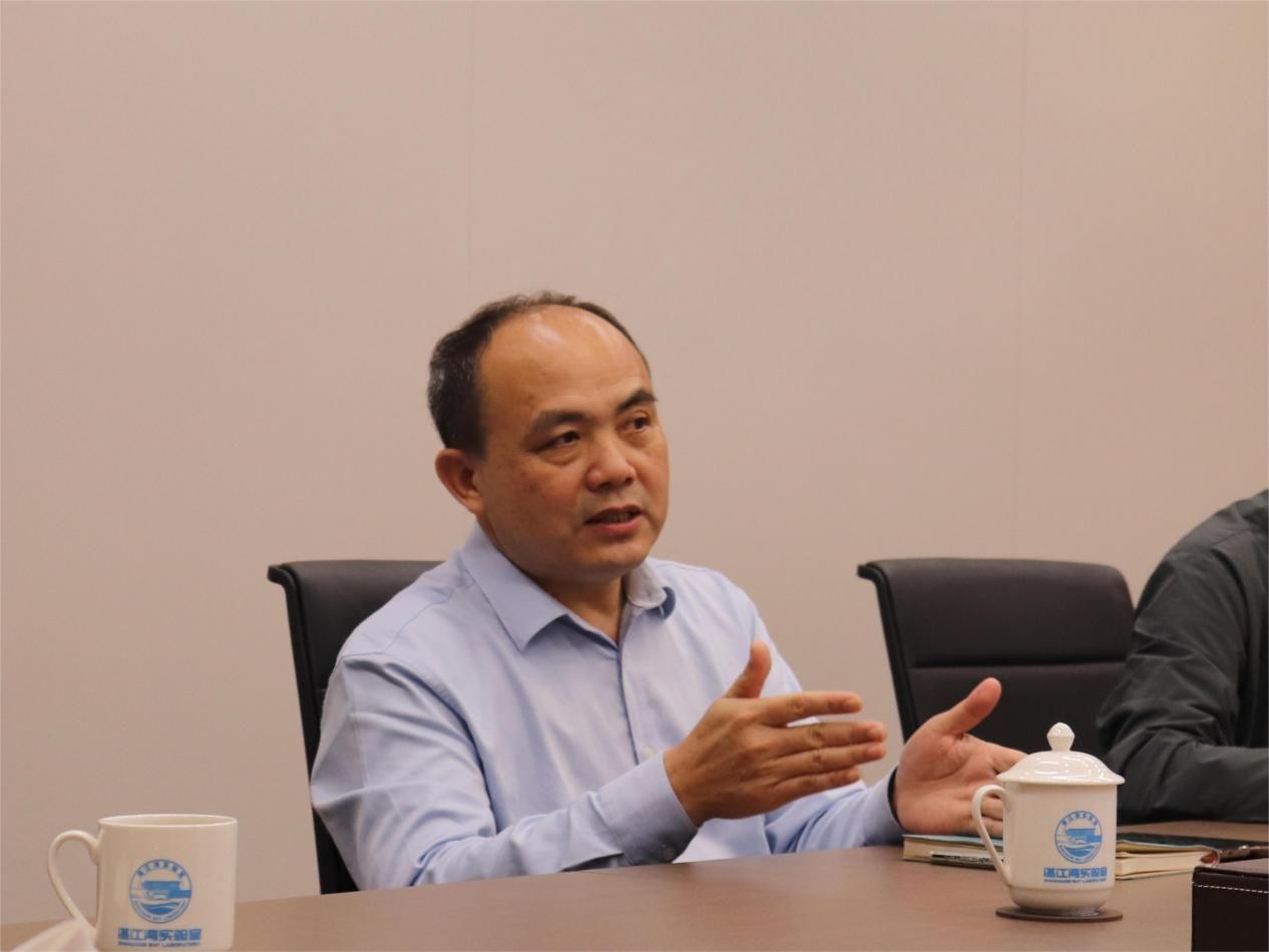 李发武向陈振华介绍了生科院及红树林研究院的成立背景、组织架构,并表示红树林作为重要的蓝碳生态系统,在固碳储碳、应对气候变化和维持生物多样性等方面发挥着重要作用,我们要坚持绿色发展,加强与湛江湾实验室等海洋科研机构合作,联合科学开发和利用海洋资源,共谋高质量发展之路,向着“依海富国、以海强国、人海和谐、合作共赢”的方向前进。王锂韫介绍了学院的相关研究团队和研究成果,希望双方能交叉组团、互惠共赢,推进科研项目的合作开发。