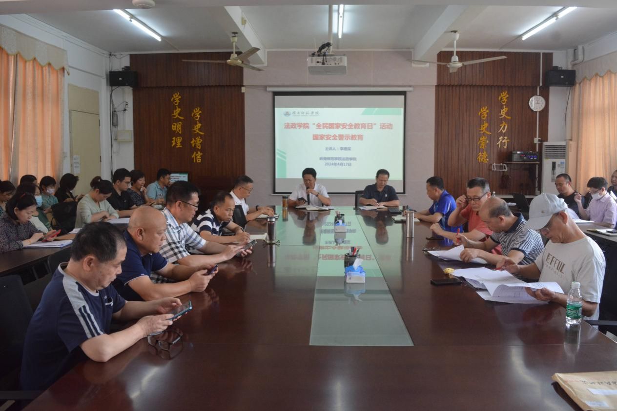 根据教育部、省教育厅及学校《关于开展2024年全民国家安全教育日专题教育活动的通知》要求,深入学习贯彻习近平总书记关于加强国家安全教育的重要指示批示精神,坚持总体国家安全观,进一步增强学院教职工的国家安全意识和法治意识,自觉维护国家安全。4月17日,法政学院在弘雷楼313会议室召开了全民国家安全教育警示会,会议由法政学院党委书记李德深主持,全体教职工参加。