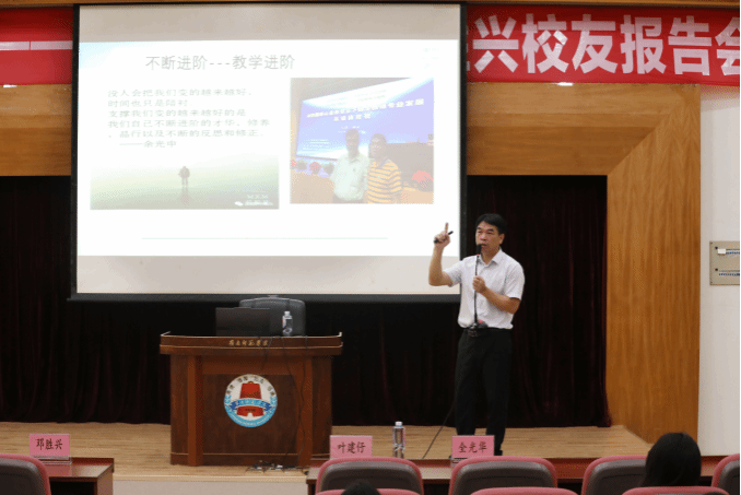 4月19日,由学校校友办主办、数计学院承办的以心为田,以爱为魂,行走在幸福教育的大地上——校友大讲堂之邓胜兴校友报告会于岭南师范学院图书馆报告厅召开。本次讲座特邀数计学院优秀校友、全国特色教育优秀教师、广东省师德先进个人、现任湛江市第十中学党总支书记邓胜兴为主讲人。数计学院党委书记叶建仔、党委副书记全光华、湛江市农垦实验中学教师李杨成等参加讲座。
