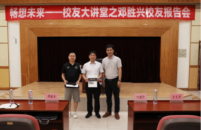 全光华向大家介绍了邓胜兴校友的优秀成就,并代表数计学院全体师生对他的到来表示由衷的感谢。随后叶建仔为校友颁发纪念品,希望优秀校友们可以与岭师有更多的交流和合作的机会。