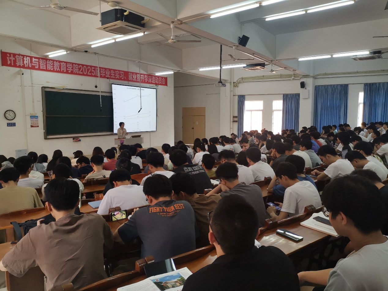 为帮助同学们更加深入了解毕业生就业和升学形势,尽早做好未来规划,提前做好充分准备,4月28日上午和4月29日下午,计算机与智能教育学院在教三611分别举办计算机科学与技术、大数据、人工智能、软件工程专业2025届毕业生实习、就业暨升学深造动员会。学院院长杨俊杰、党委副书记陈明娟、副院长陈永恒,软件工程系主任吴东副、副主任卢禹锟,大数据与人工智能系主任周生彬,人工智能专业负责人刘勇,2021级辅导员刘利丹以及2024届就业和升学深造学生代表和全体2025届应届生参加了动员会。会议由刘利丹主持。