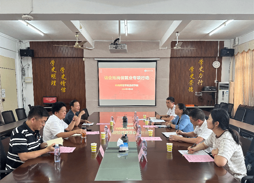 5月9日,为深入推进访企拓岗促就业专项行动,全力拓宽毕业生就业渠道,法政学院在弘雷楼313会议室与湛江市司法局党组书记罗东玲、党组成员、副局长骆水明以及湛江市委依法治市办秘书科科长杨宗斌、科员叶倩一行开展校地共建交流研讨会。学院党委书记李德深、院长刘鑫淼、法学系主任孟庆吉参加了本次洽谈交流。