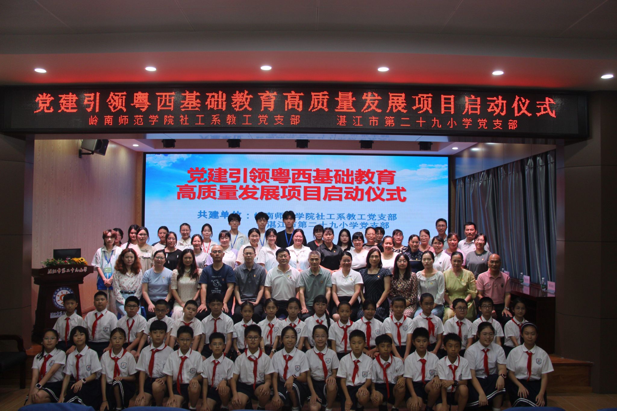 为深入学习贯彻党的二十大精神和习近平总书记视察广东重要讲话重要指示精神,进一步巩固拓展学习贯彻习近平新时代中国特色社会主义思想主题教育成果,深入学习领会习近平总书记关于党的建设和组织工作的重要指示精神,5月14日下午,岭南师范学院社会与公共管理学院社工系教工党支部与湛江市第二十九小学党支部于湛江市第二十九小学联合启动“党建引领粤西基础教育高质量发展”项目。岭南师范学院社会与公共管理学院社工系教工党支部成员、湛江市第二十九小学党支部成员、岭南师范学院社会工作系2021级学生、湛江市第二十九小学五年级学生等人出席本次会议。