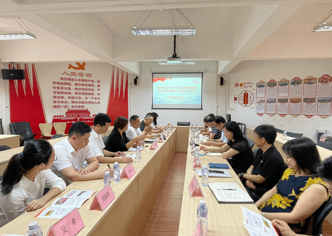5月16日下午,中共广州市白云区委党校常务副校长熊奇家,麻章区委副书记、白云驻麻章工作组组长黎妮一行10人来我校马院调研交流,重点学习考察挖掘和宣传红色资源及立德树人的做法与经验情况。马院院长夏松涛、副院长施保国及教研室主任接待了调研组一行,双方进行了座谈交流。