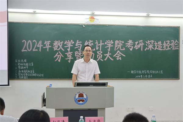 5月18日下午,为提升人才培养质量,数学与统计学院于第五教学楼A栋103室举办了2024年升学深造经验交流暨动员大会。数学与统计学院党委副书记全光华、考研辅导老师赵海清、辅导员林韵、24届上岸学生以及各级学生代表参加会议。
