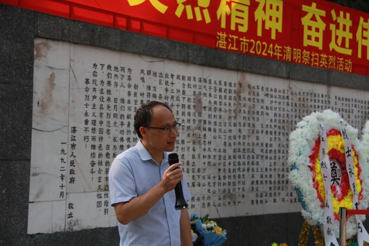 4月3日下午,湛江第一中学团委在寸金桥公园烈士陵园开展“党建带团建·四史教育”清明祭英烈活动,追寻英烈足迹,传承红色基因,弘扬爱国精神。岭南师范学院马克思主义学院贺永田副教授受邀为百余名入团积极分子讲授了主题微党课,推进“党建引领粤西基础教育高质量发展”项目共建,加强党建带团建,推动大中学一体传承红色基因。湛江第一中学党办主任孔蓉蓉、团委书记高雯、高一级主任谢源清,马克思主义学院党总支组织员钟双连参加了此次活动。