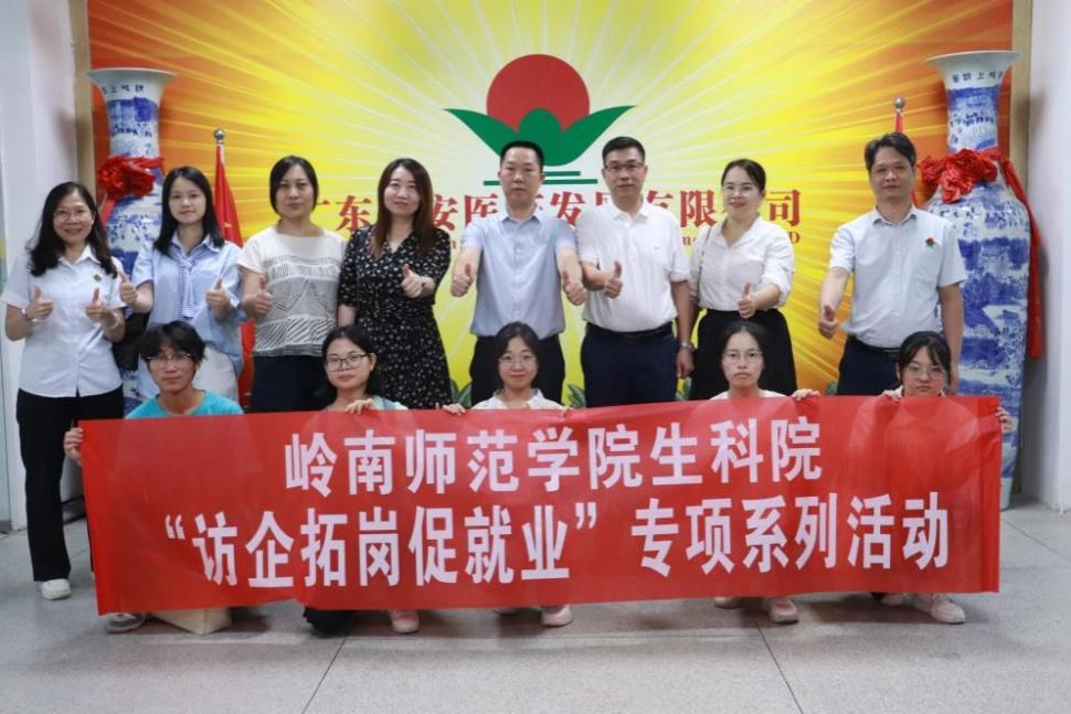 为充分整合校企双方资源优势,积极探索产教融合的育人新模式,通过“走出去”进一步拓宽毕业生就业渠道,促进毕业生高质量就业,5月22日,生科院党委书记李发武、党委副书记覃静君、副院长王锂韫、生物技术系主任冯瑜菲、就业辅导员连丽森带领5名毕业生代表,走访广东金安医药发展有限公司和湛江通用万邦医药有限公司等两家企业。