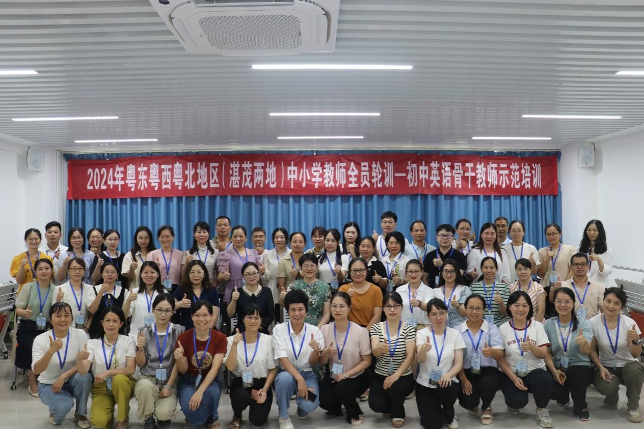 6月16日下午,由学校外语院承办的2024年粤东粤西粤北地区(湛茂两地)中小学教师全员轮训--初中英语骨干教师示范培训班在学校教5-A611教室举行开班典礼。外语院院长吴晓春、英语系主任唐汉娟、学院办公室主任翁惠萍以及来自湛江和茂名两地各中学的50名参训学员出席了启动仪式。启动仪式由唐汉娟主持。