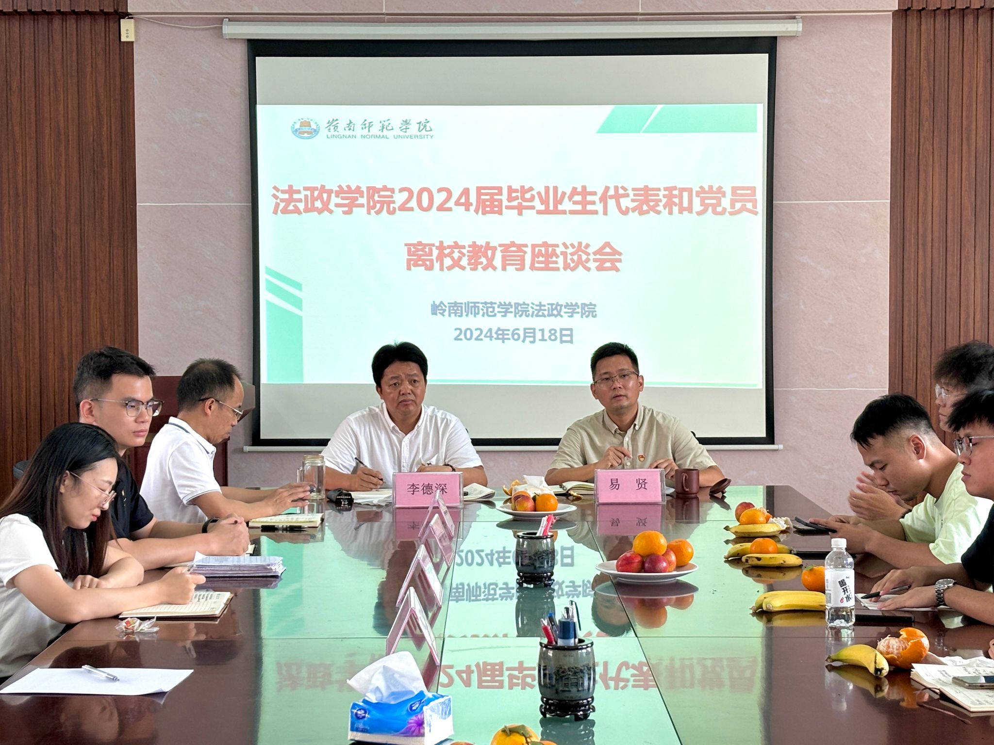 6月18日下午,为加强毕业生党员离校教育工作的成效,法政学院党委召开了毕业生党员教育座谈会。法政学院党委书记李德深、副书记易贤、副处级组织员黎祎出席座谈会现场,学生党支部书记赵欢、孟玉新、杨一帆,以及在校的毕业生党员和非毕业生党员代表参加座谈会。