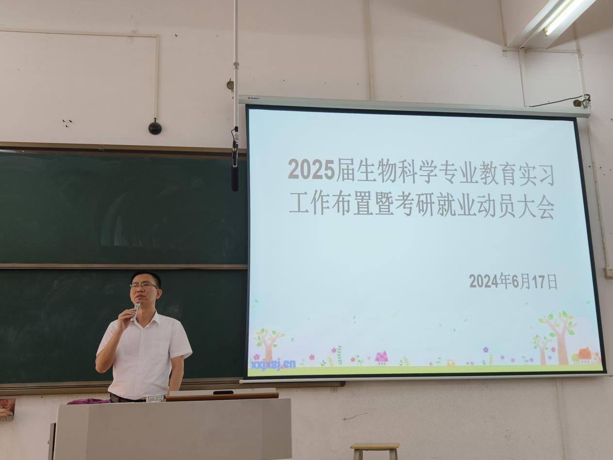 为加强生物科学专业学生的教育实践能力和就业竞争力,提高学生的综合素质,生命科学与技术学院于6月17日在教三611召开了生物科学专业教育实习工作布置暨考研就业动员大会。出席动员大会的有生命科学与技术学院院长刘锴栋、相关教育实习指导教师,2021级生物科学专业学生参加会议,会议由生命科学与技术学院老师余小杏主持。
