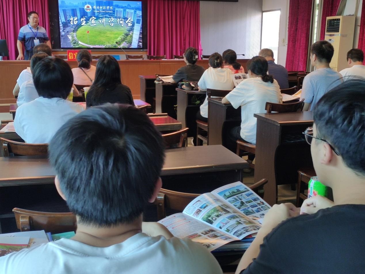 6月22日在信宜中学召开的招生宣讲会吸引了众多信宜中学的考生和家长前来聆听。宣讲会由屈云副书记主讲。屈云从学校简介、招生政策解读、学院推介三个部分展开讲解,并详细解答了考生及家长提出来的疑问。现场气氛活跃,达到了预期宣传效果。