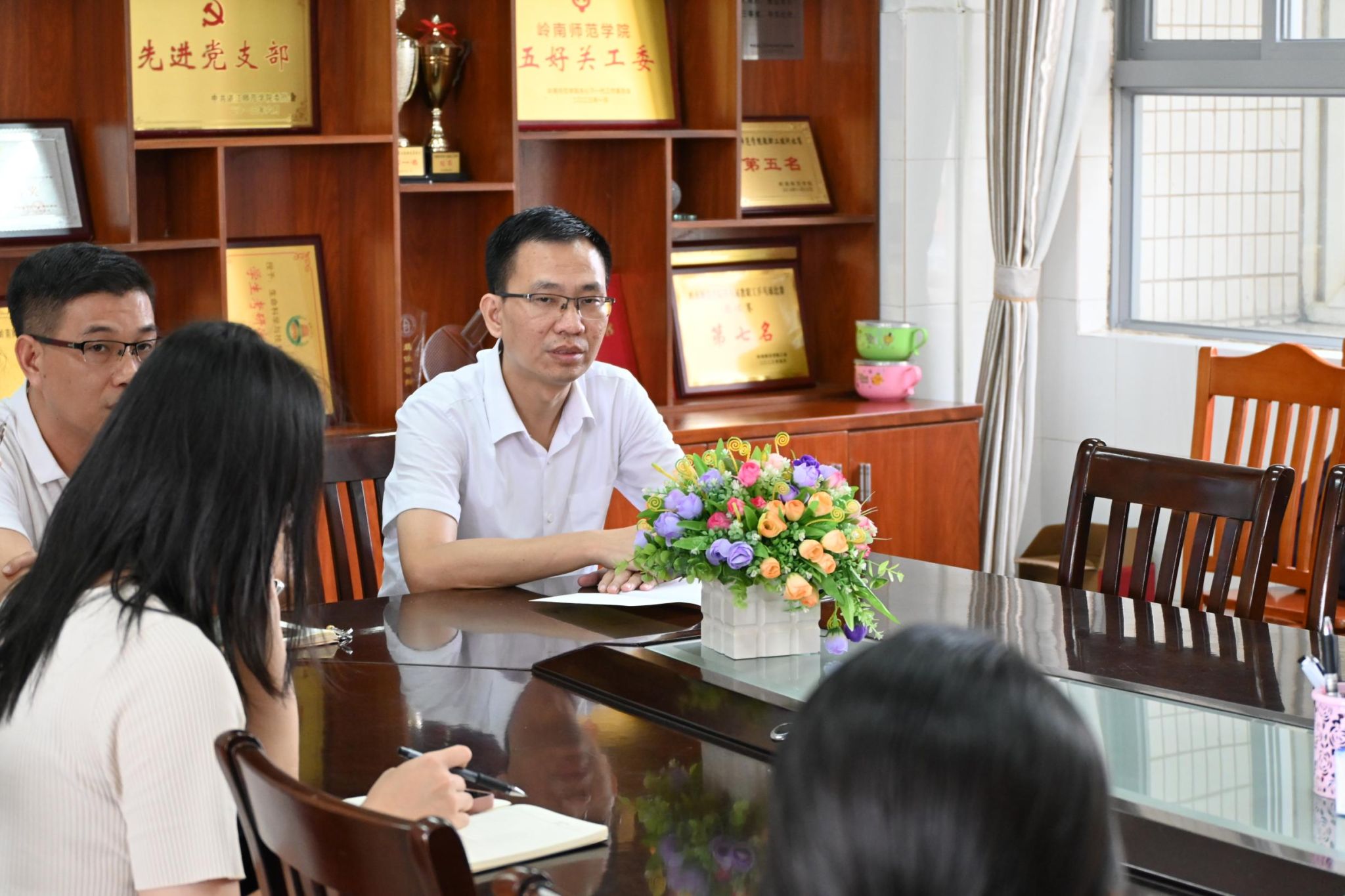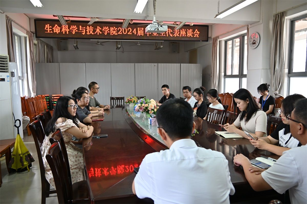 为加强与毕业生的沟通和交流,稳步推进2024届毕业生就业和文明离校工作,6月18日下午,生科院于燕雷楼D-505室召开2024届毕业生代表座谈会,生科院党委书记李发武、院长刘锴栋、党委副书记覃静君以及毕业班学生代表参加座谈会。
