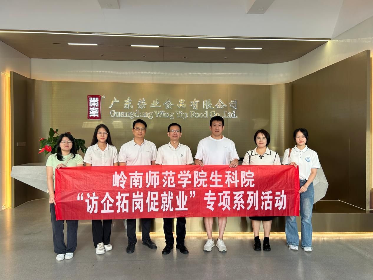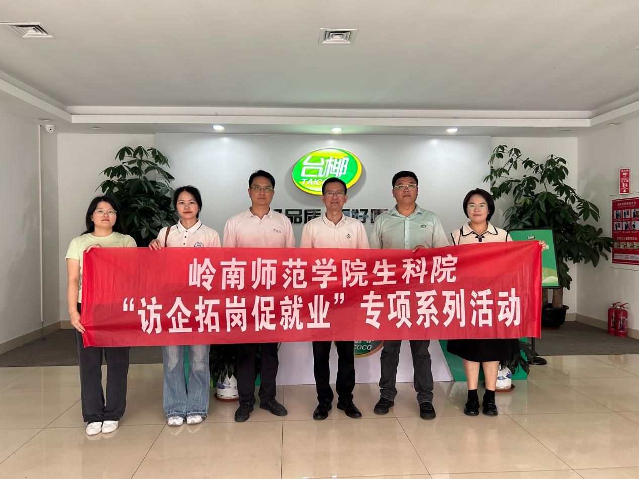 为进一步优化就业指导服务,全面促进生科院毕业生更充分更高质量就业,深化校企合作,促进校企协同发展,6月24日-25日,生科院院长刘锴栋、生科院党委副书记覃静君、生物科学系副主任余小杏以及辅导员连丽森前往广东台椰食品有限公司、广东荣业食品有限公司、广州市莱赛生物科技有限公司等开展访企拓岗活动。