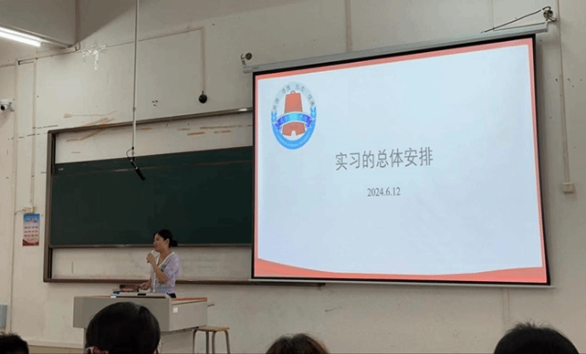 在主持人屈云霞老师介绍出席嘉宾、会议流程后,首先由彭兰贞老师介绍实习工作安排,指出实习是将理论知识转化为实践能力的关键一环,希同学们珍惜实习机会,做好学习计划、时间管理、充分准备,迎接各种挑战,认真完成每项任务,不断提升专业技能。接着,谭高亮老师介绍进校实习注意事项,提醒大家遵守学校各项规章制度,尊重领导同事;在校外实习阶段的班级管理、学生日常管理以及与学生相处等方面充分展现优秀职业道德和专业素养。谭高亮老师还强调实习安全问题的重要性,要求大家注意保障人身和财产安全,确保实习顺利进行。随后张敏思同学作为学生代表发言,分享对实习的期望憧憬,承诺将全身心投入实习工作,以积极态度和饱满热情学习成长,为未来的职业发展奠定坚实基础。晏蜻老师做总结发言,强调实习是人才培养过程的重要部分,是将所学知识应用到实践的重要环节,也是提升实践能力和应用专业知识的重要机会;希望大家热爱工作,积极进取,注意协调处理实习和考研之间的关系,合理安排时间,确保实习阶段取得良好成果,为未来职业生涯打下坚实基础。